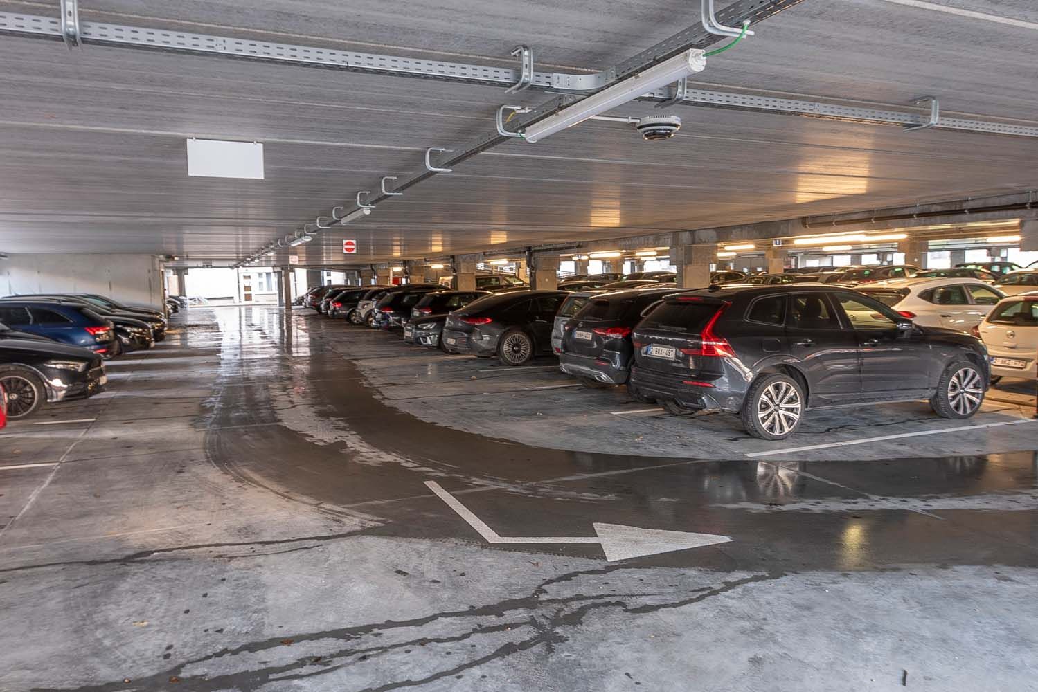 Net voorbij de toekomstige inkom aan de Noordlaan, waar een Kiss & Ride zone is voorzien, rijdt men het parkeergebouw binnen. Het parkeergebouw zelf heeft een logische circulatieflow en is volledig linksdraaiend opgebouwd. Het uitrijden van het parkeergebouw gebeurt centraal op de gevel zijde Noordlaan om op die manier bijna haaks aan te sluiten op de ventweg aan de Noordlaan.